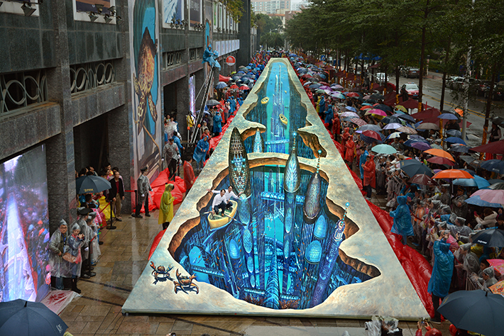 万氏兄弟与骏壹万邦合作打造4D错觉海洋环保艺术展,创作五组大型3D画、4D画作品,结合音乐互动,呈现不一样的海洋生物及梦幻场景,通过观众与作品的互动,传达出环保的理念,感谢主办方与合作方对艺术的大胆尝试,让一个震撼的艺术得以呈现,从而达到轰动的效果!